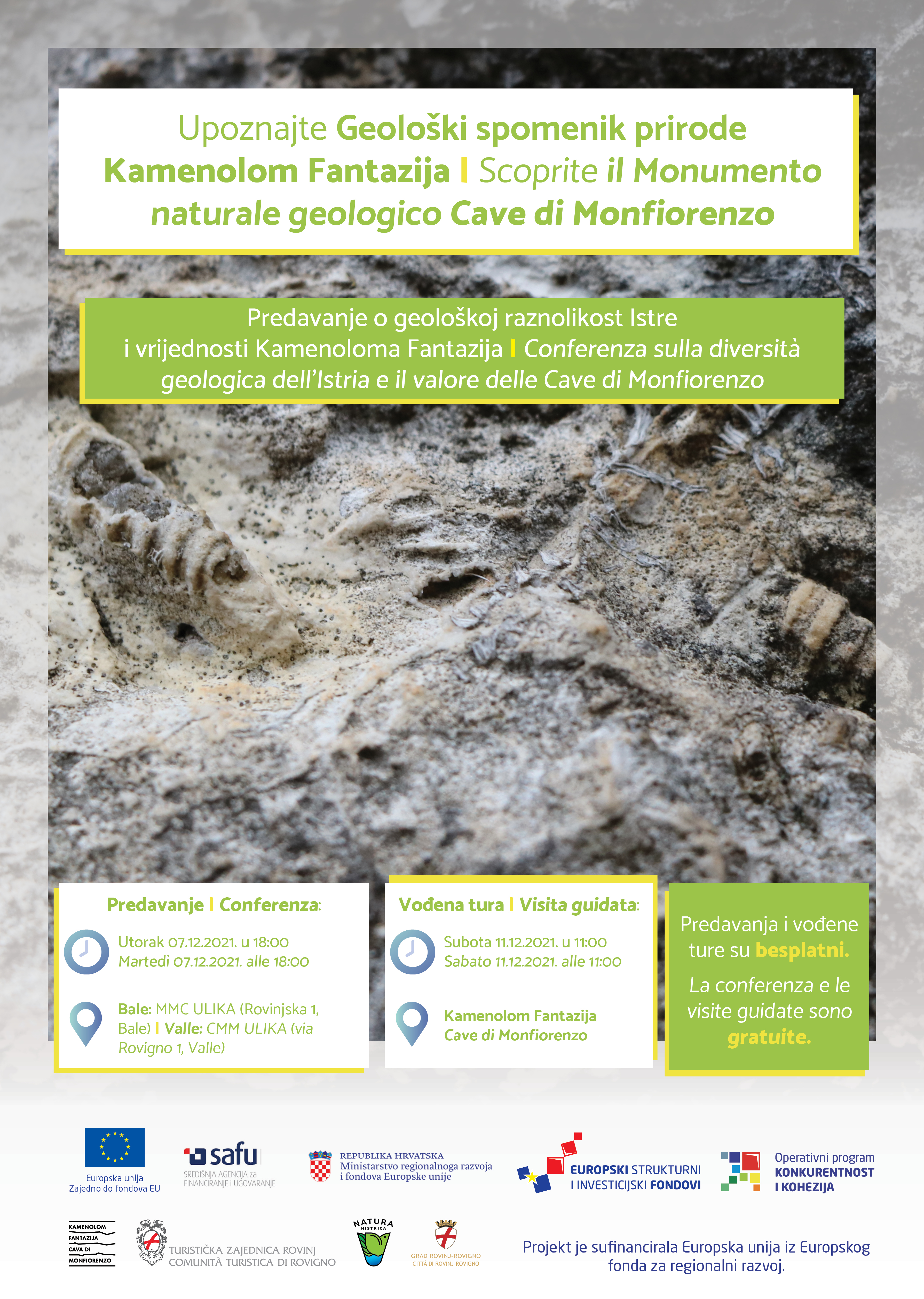 JU Natura Histrica u sklopu projekta geoIST3A – Valorizacija prirodne baštine u Istarskoj županiji unapređenjem konkurentnosti turističke ponude organizira niz besplatnih predavanja o geološkoj raznolikosti Istre i vrijednosti Kamenoloma Fantazije. Kamenolom Fantazija predstavlja jedinstven primjer sedimentologije vapnenca i jedan od najinteresantnijih u svijetu. Cilj predavanja je upoznavanje Geološkog spomenika prirode Kamenolom Fantazija. Osim predavanja biti će organizirane besplatne vođene ture. Predavanja su namijenjena cjelokupnoj zainteresiranoj javnosti, a posebna predavanja i vođene ture organizirane su za predstavnike nevladinih organizacija za zaštitu prirode i okoliša i za turističke vodiče i pružatelje usluga u turizmu. Predavanja i vođene ture organiziraju se prema sljedećem rasporedu: